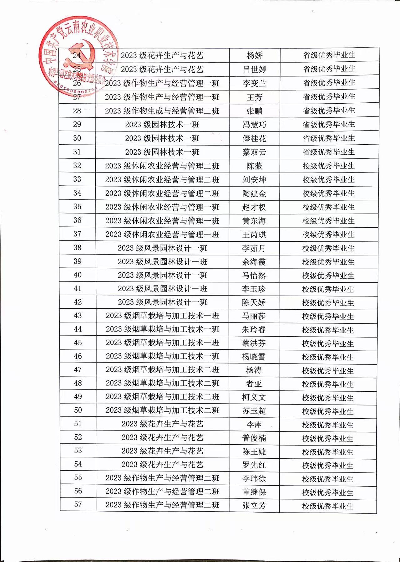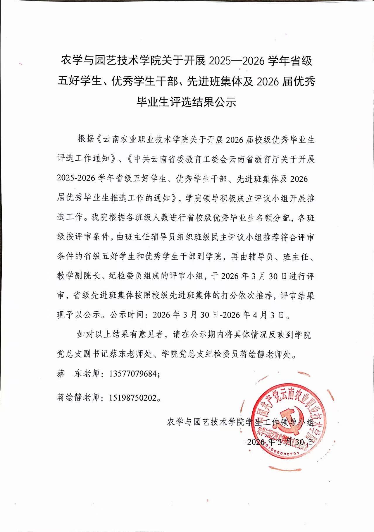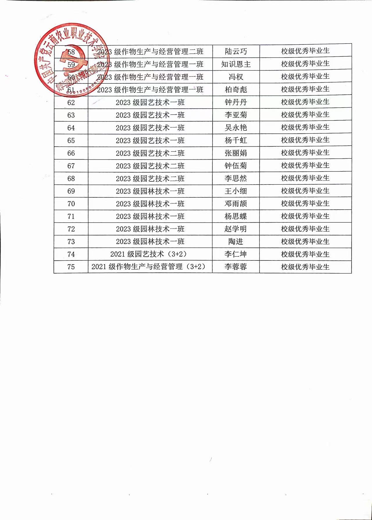 农学与园艺技术学院关于开展2025—2026学年省级五好学生、优秀学生干部、先进班集体及2026届优秀毕业生评选结果公示 来源:本站 浏览量:108 日期:2026-03-30 (图:周懂/一审:周懂、二审:蔡东、三审:李涛/一校:周懂、二校:蔡东、三校:李涛/责任编辑:李铠旭) 上一篇:没有了 下一篇:农学与园艺技术学院召开2025-2026学年第二学期 第一次教职工大会