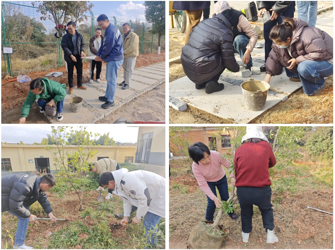 新闻公告12月17日中午,中共云南农业职业技术学院农学与园艺技术学院总支部党员大会结束后,新一届党总支成员牵头,组织学校教务处党支部、学生处党支部、农学与园艺技术学院教工党支部、农学与园艺技术学院学生党支部成员开展实践活动。大家分工协作,完成学校入口处便民步道铺贴,在特色花卉工程中心栽种杨梅树。挥锹培土、铺砖整平,实干中凝聚合力。